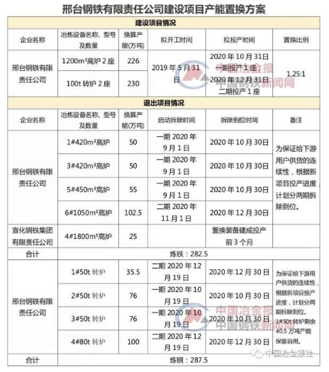 2018年10月30日,河北省工信廳發布了《河鋼集團石家莊鋼鐵有限責任公司建設項目產能置換方案公示》,提出河鋼石鋼將于2018年12月在石家莊市井陘礦區開工建設新項目。在搬遷設計上,河鋼石鋼將在井陘礦區新建兩座130噸電爐,換算產能為200萬噸。